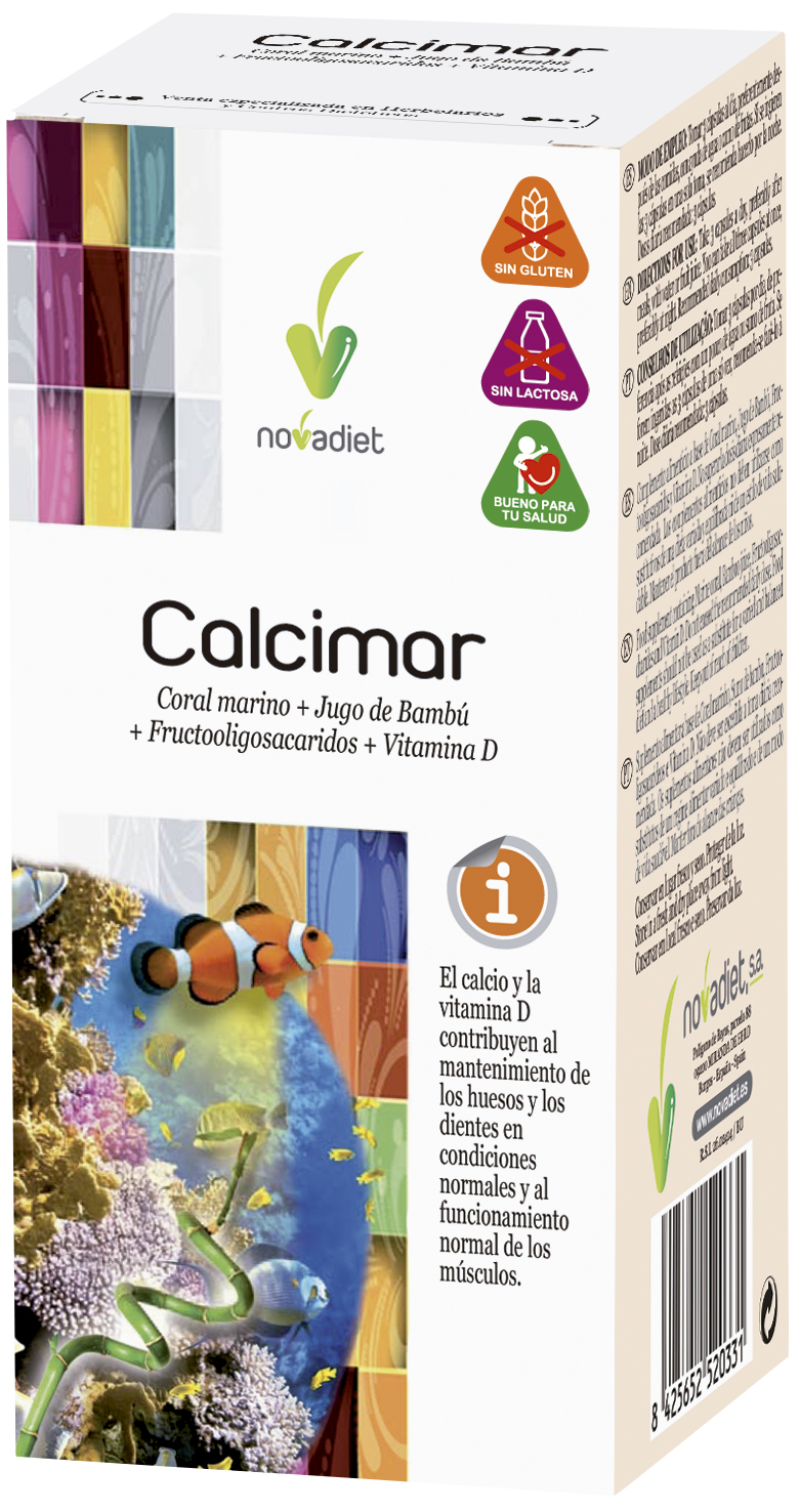 Arena de coral marino (crustáceos), Agente de carga (celulosa microcristalina), Bambú, Antiaglomerante (estearato de magnesio), Fructooligosacáridos, Vitamina D (colecalciferol).