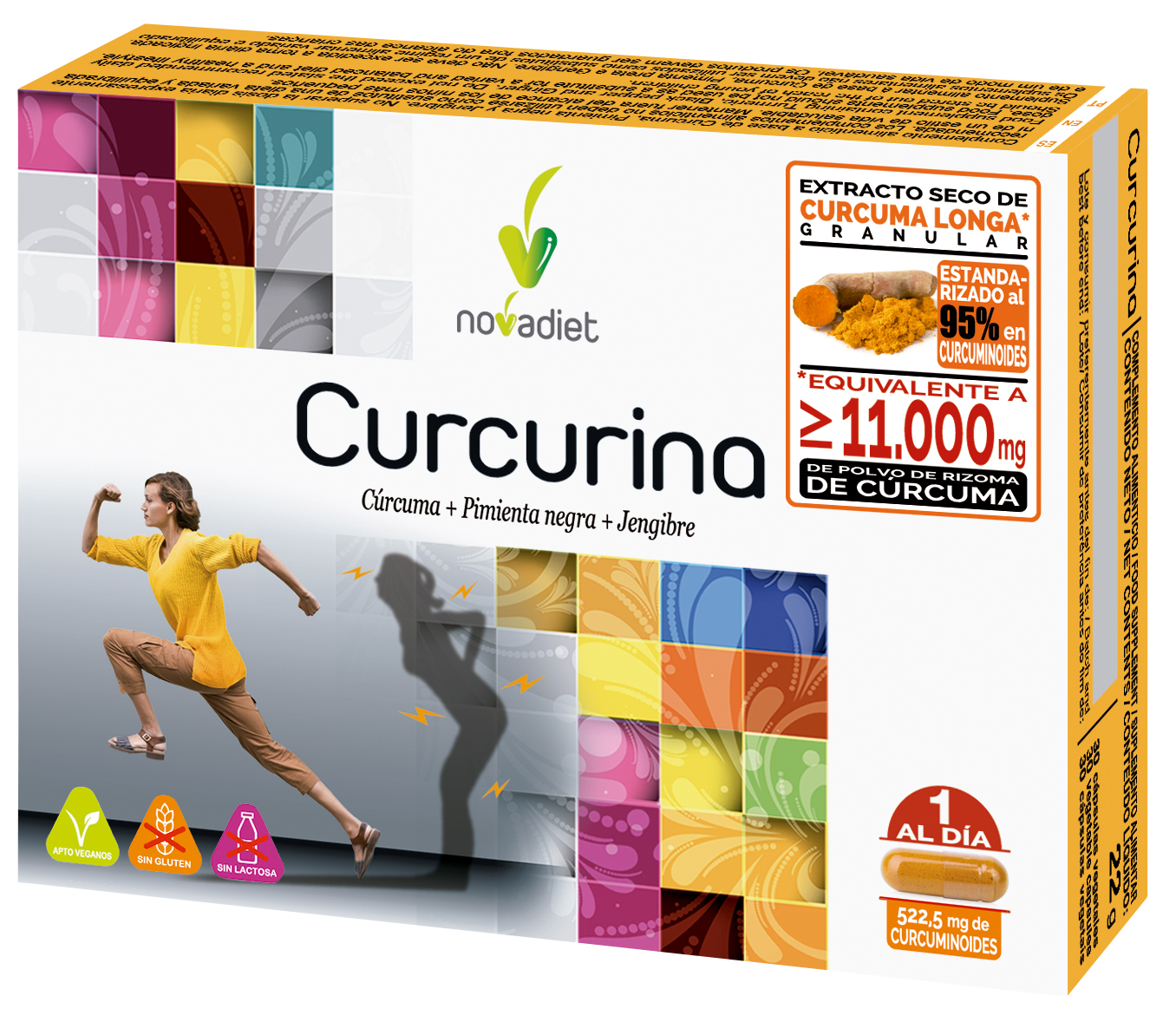 Cúrcuma granular (E.S., titulado al 95% en curcuminoides), Jengibre (E.S., titulado a ≥ 5% en gingerol), Antiaglomerantes (sales magnésicas de ácidos grasos, dióxido de silicio), Agente de carga (celulosa microcristalina), Pimienta negra BioPerine® (E.S. 50:1, titulado a ≥ 95% en piperina).