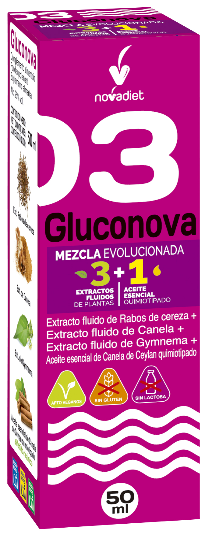 Ext. fluido de Rabos de cereza, Ext. fluido de Canela, Ext. fluido de Gymnema, Aceite esencial de Canela de Ceylan quimiotipado.