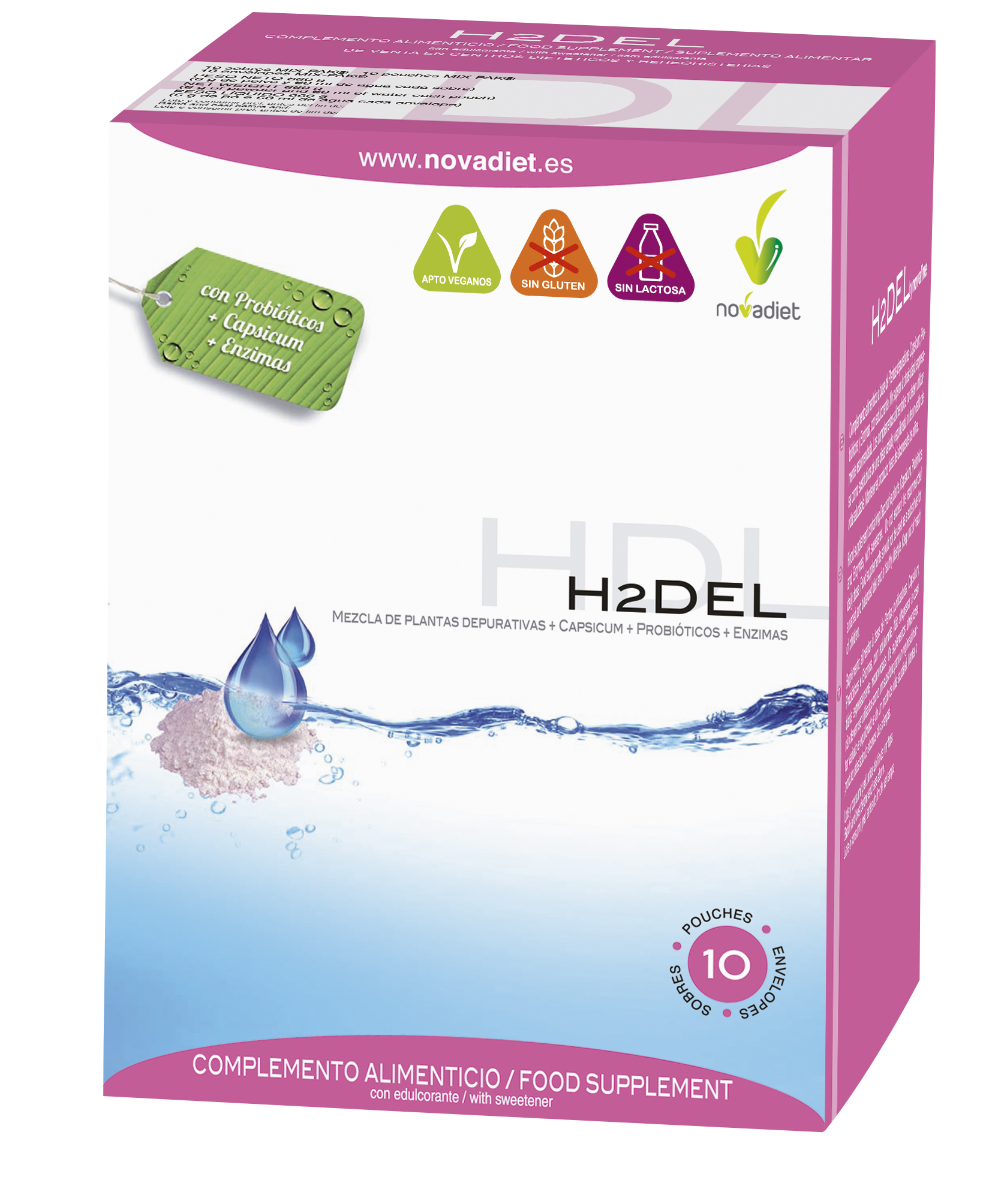 Agua, Maltodextrina, Mezcla de extractos secos de plantas: Hibisco (Hibiscus sabdariffa, flor, E.S., 125 mg), Alcachofa (Cynara scolymus, hoja, E.S., 125 mg), Cola de caballo (Equisetum arvense, parte aérea, E.S., 100 mg), Diente de león (Taraxacum officinale, raíz, E.S., 75 mg), Cardo mariano (Silybum marianum, semilla, E.S., 50 mg), Capsicum (Capsicum annuum, fruto, E.S., 0,36 mg); Probióticos (200 mg) (Bifidobacterium lactis, Enterococcus faecium, Lactobacillus acidophilus, Lactobacillus paracasei, Lactobacillus plantarum, Lactobacillus salivarius, Lactococcus lactis), Papaína (50 mg), Bromelaína (50 mg), Acidulante (ácido cítrico), Conservador (sorbato potásico), Aroma, Antiaglomerante (dióxido de silicio), Edulcorante (sucralosa).