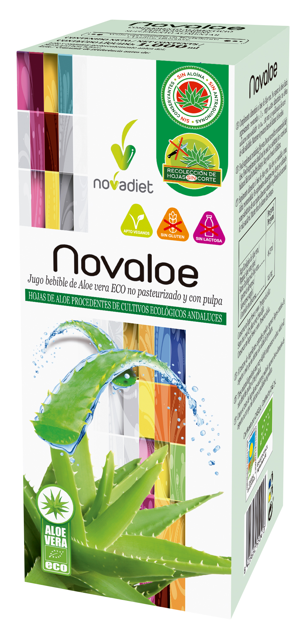 Jugo de Aloe vera no pasteurizado con pulpa (Aloe vera var. barbadensis Miller, titulado a > 250 mg/L en aloverosa) (99,5 %) procedente de Cultivo Ecológico, Acidulante (ácido cítrico), Antioxidante (ácido ascórbico).