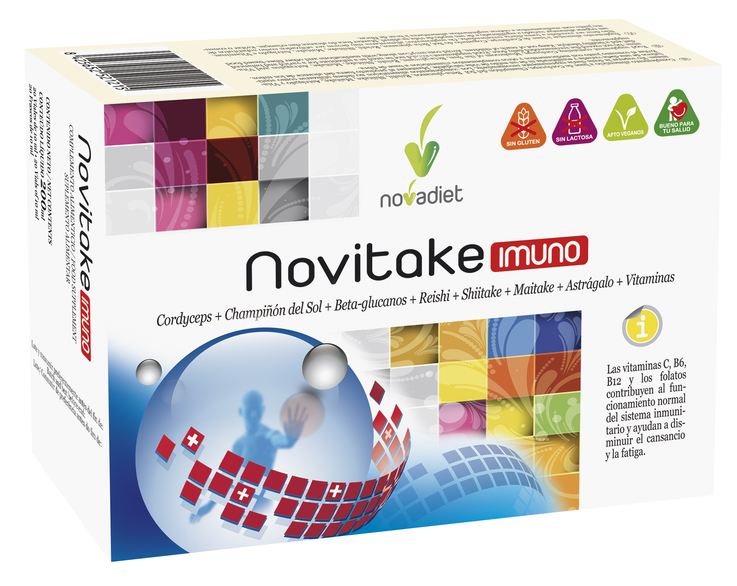 Agua desmineralizada, Fructosa, Beta-glucanos de levadura de cerveza (titulado al 70% en β-1,3/1,6-glucanos), Cordyceps (Cordyceps sinensis, E.S., titulado al 30% en polisacáridos), Champiñón del Sol (Agaricus blazei, E.S., titulado al 40% en polisacáridos), Reishi (Ganoderma lucidum, E.S., titulado al 50% en polisacáridos), Shiitake (Lentinus edodes, E.S., titulado al 10% en polisacáridos), Maitake (Grifola frondosa, E.S., titulado al 50% en polisacáridos), Astrágalo (Astragalus membranaceus E.S., titulado al 20% en polisacáridos), Vitamina C (Ácido L-ascórbico), Vitamina B6 (clorhidrato de piridoxina), Ácido fólico (ácido pteroilmonoglutámico),Vitamina B12 (cianocobalamina), Acidulante (ácido cítrico), Conservador (sorbato potásico), Aroma natural de limón.