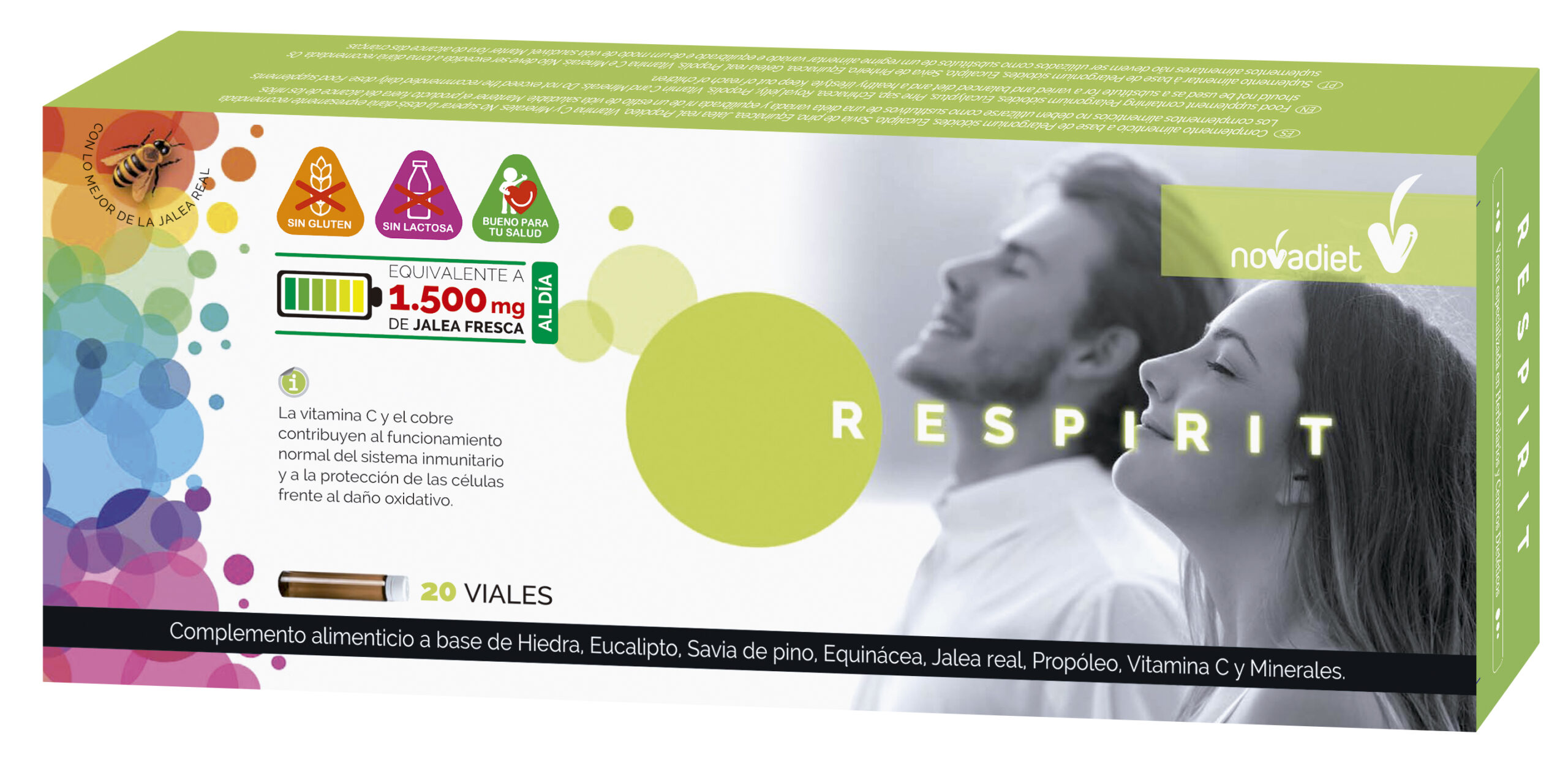 Agua, Fructosa, Eucalipto, Savia de pino, Equinácea, Jalea real liofilizada (10-HDA > 4 %), Hiedra, Propóleo, Vitamina C (ácido L-ascórbico), Aceite esencial de Menta Brasil, Manganeso (gluconato de manganeso), Cobre (gluconato cúprico), Acidulante (ácido cítrico), Conservador (sorbato potásico).