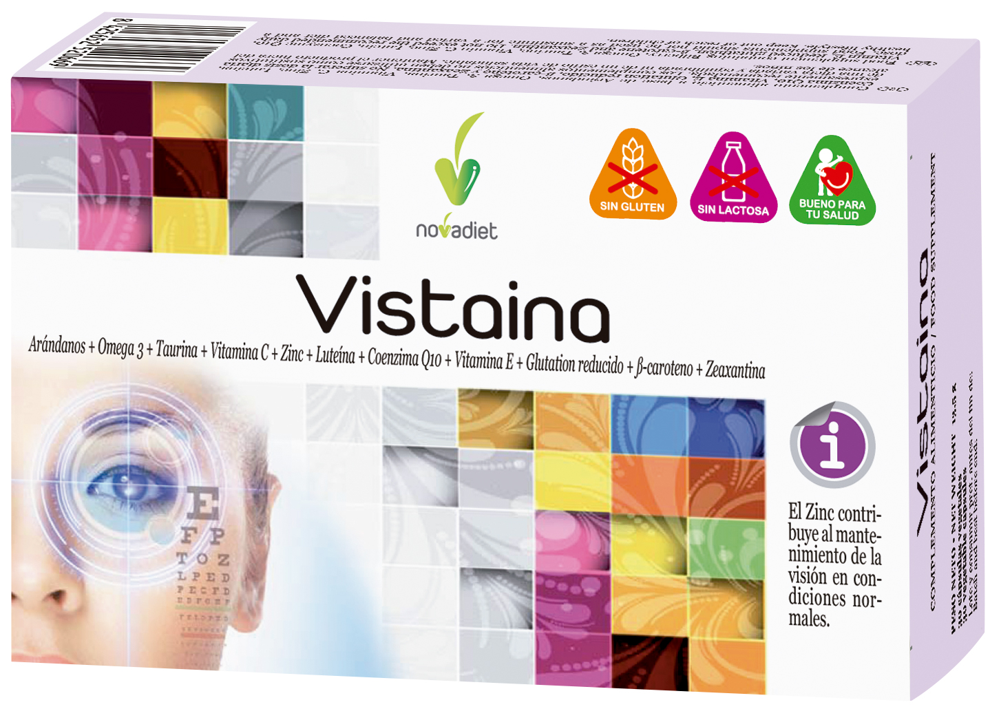 Aceite microencapsulado omega-3 (pescado), Luteina y Zeaxantina de Tagetes erecta, Taurina, Agente de carga (celulosa microcristalina), Vitamina C (ácido L-ascórbico), Arándano, Cinc (citrato de cinc), Antiaglomerante (sales magnésicas de ácidos grasos), Coenzima Q10, Vitamina E (acetato de DL-alfa-tocoferilo), Vitamina A (ß-caroteno), Glutation reducido. Cubierta: Hidroxipropilmetilcelulosa.